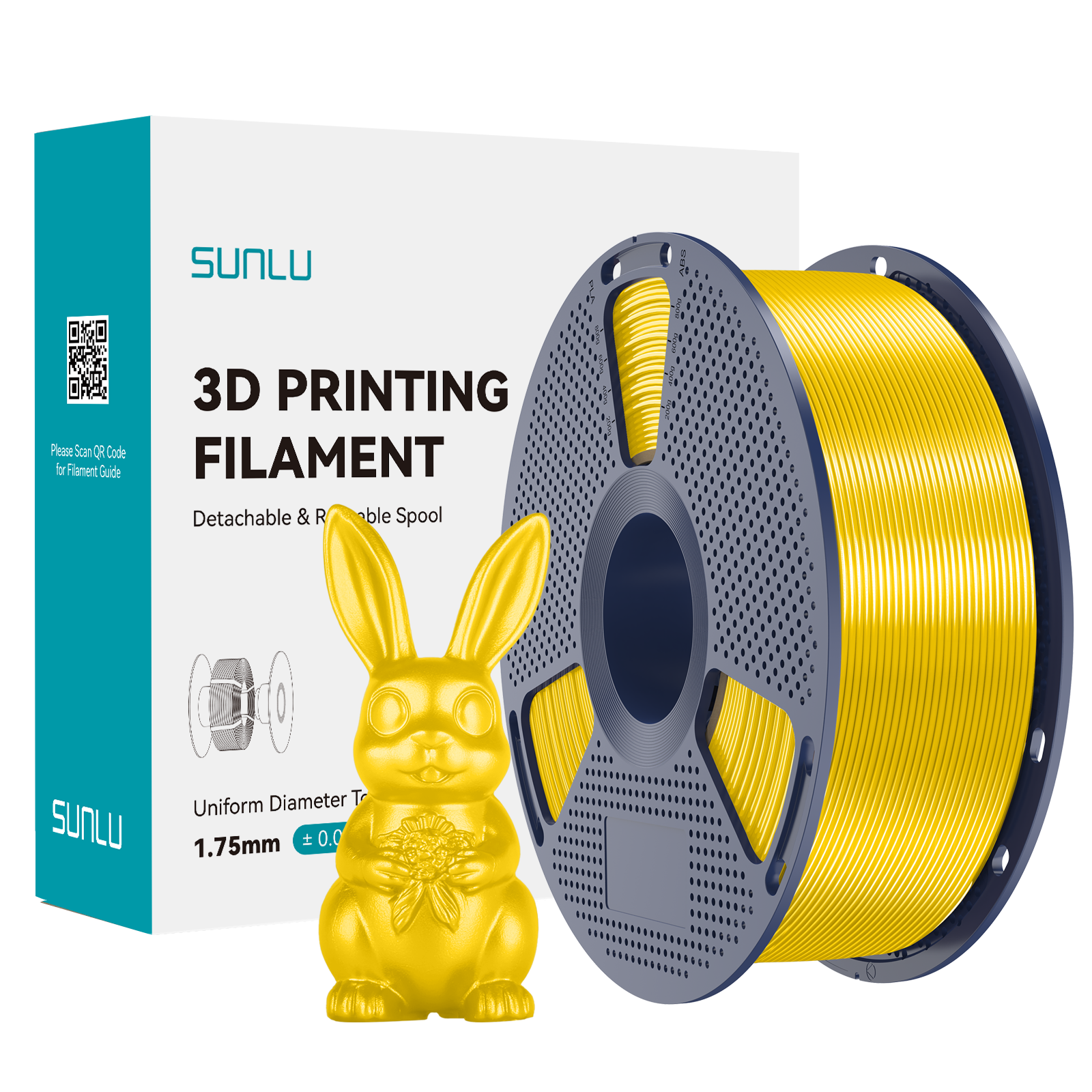 - Wysokiej jakości filament do drukarek 3D, wyprodukowany przez SUNLU. 1 kg filamentu PLA o średnicy 1.75mm nawinięty na szpuli. Kolor: SILK Yellow / Żółty, jedwabny - o pięknym połysku