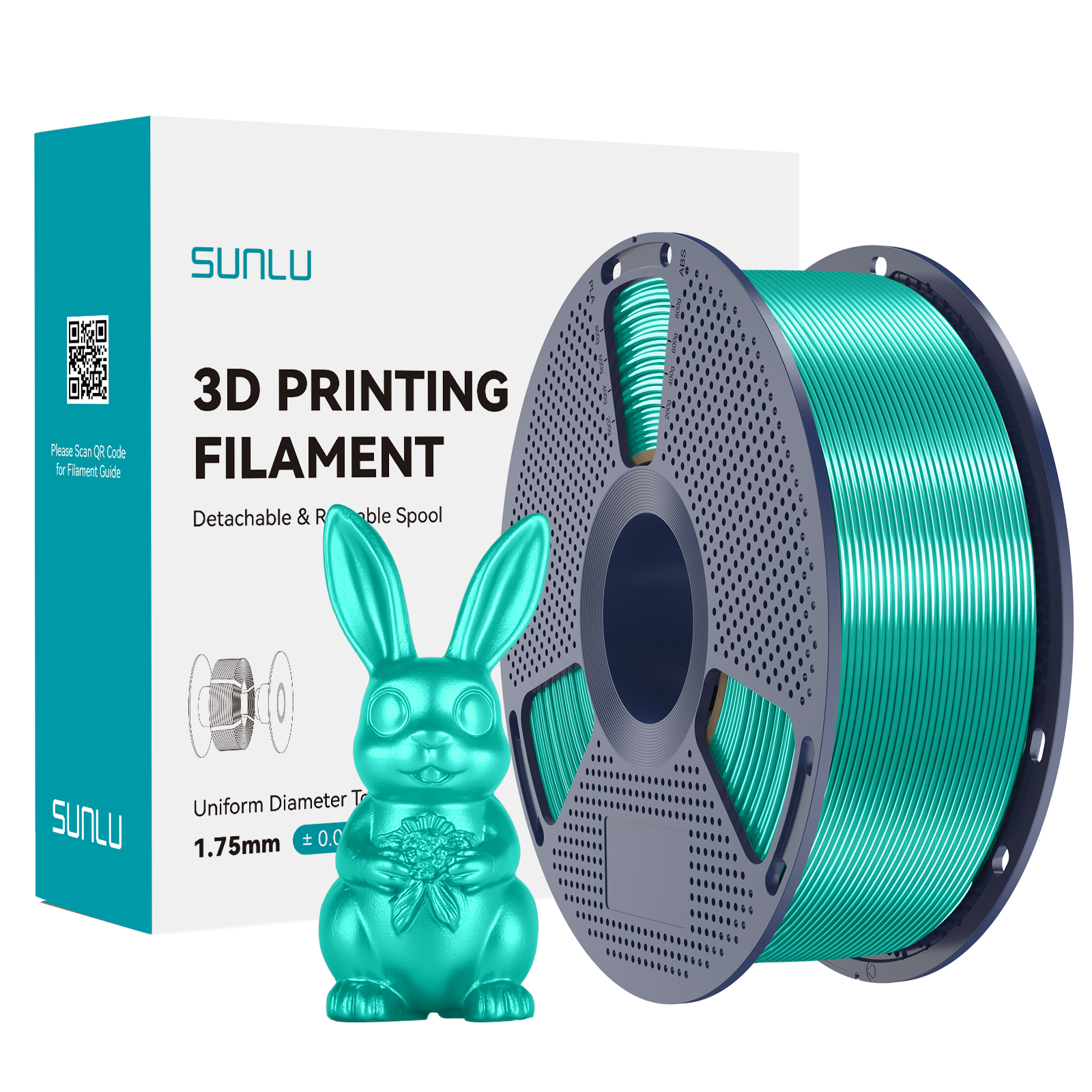 - Wysokiej jakości filament do drukarek 3D, wyprodukowany przez SUNLU. 1 kg filamentu PLA o średnicy 1.75mm nawinięty na szpuli. Kolor: SILK Green / Zielony jedwabny o pięknym połysku